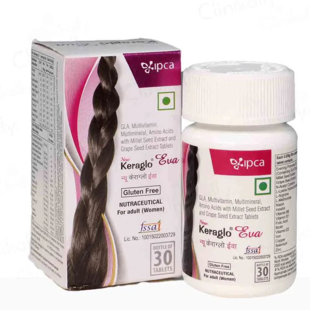 Keraglo Eva Tablet is used by women who are suffering from hair loss. Karalo Eva Tablet is used to rejuvenate and strengthen the hair follicles. It supports women who are suffering from hair fall and helps them in treating their hair loss problems. It improves hair growth by bringing more blood flow to the roots area. It helps to further improve the thickness and texture of the hair. Keraglo Eva Tablet benefits the hair by promoting hair growth and maintaining and improving the texture of the hair. Gamma-Linolenic acid provides assistance in reducing the inflammation on the scalp and treat the damage caused to the hair follicles.