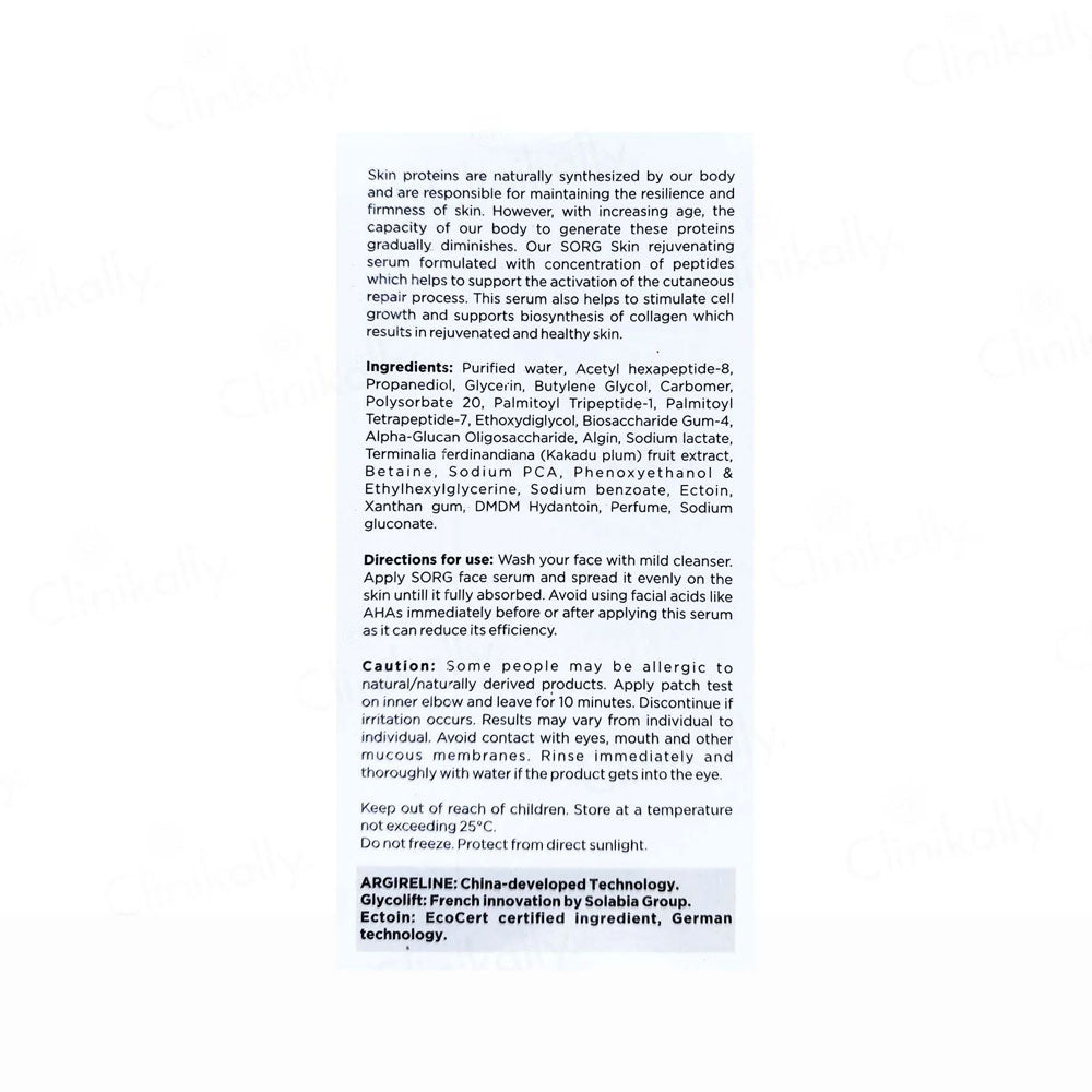Sorg Skin Rejuvenating Face Serum is a potent formula designed to revitalize and rejuvenate the skin. Enriched with powerful antioxidants like vitamin C, retinol, and hyaluronic acid, this serum effectively reduces the appearance of fine lines, wrinkles, and age spots, promoting a more youthful and radiant complexion. Its lightweight, non-greasy formula penetrates deeply to stimulate collagen production and enhance skin elasticity. Suitable for all skin types, Sorg Skin Rejuvenating Face Serum is ideal for daily use to achieve visibly smoother and firmer skin.